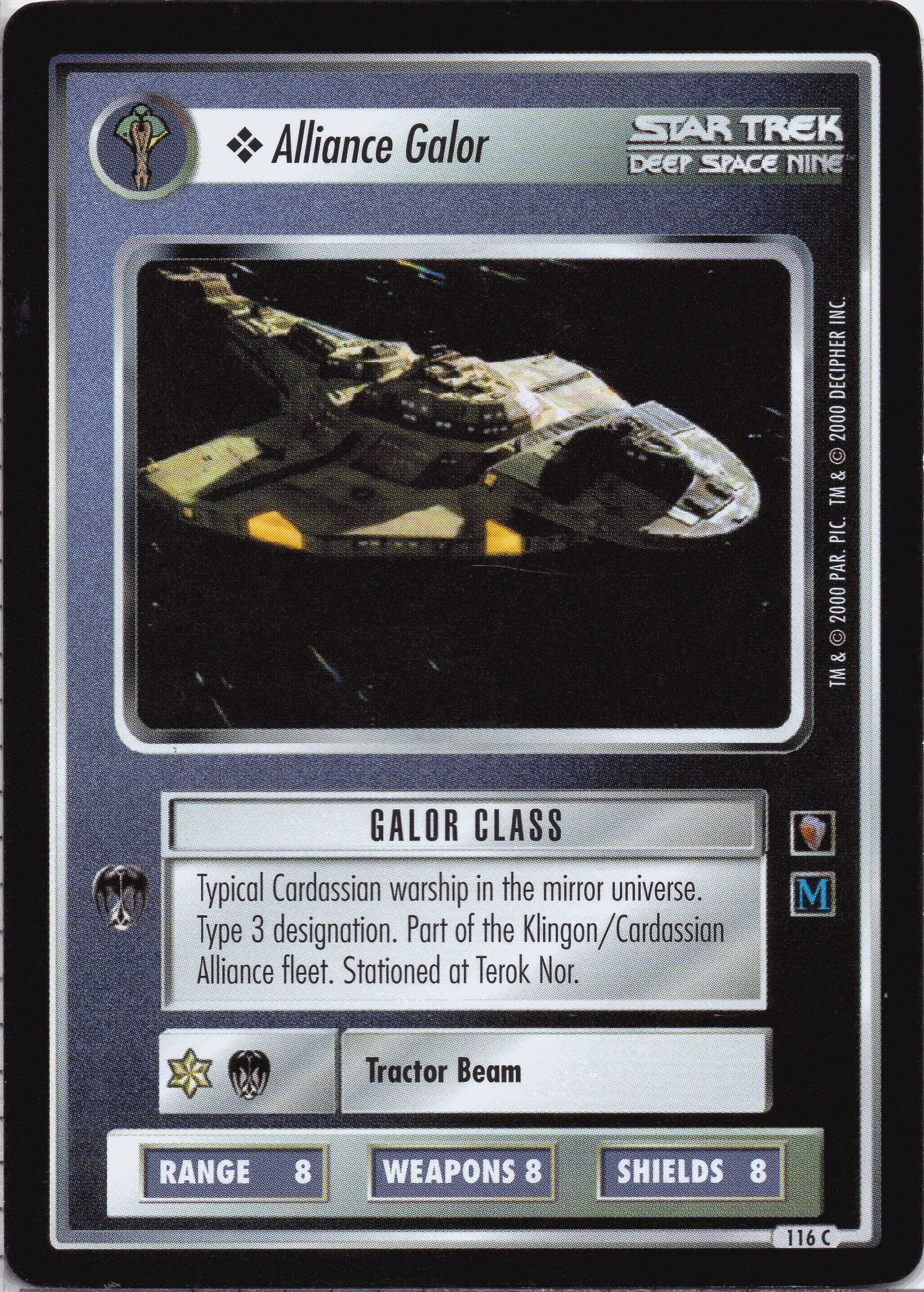 | Lore | Typical Cardassian warship in the mirror universe. Type 3 designation. Part of the Klingon/Cardassian Alliance fleet. Stationed at Terok Nor. |