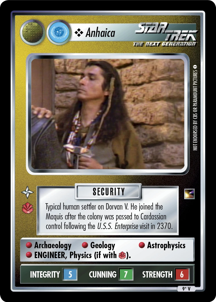 | Lore | Typical human settler on Dorvan V. He joined the Maquis after the colony was passed to Cardassian control following the U.S.S. Enterprise visit in 2370. |