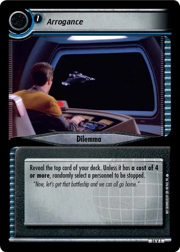 | Game Text | Reveal the top card of your deck. Unless it has a cost of 4 or more, randomly select a personnel to be stopped. |