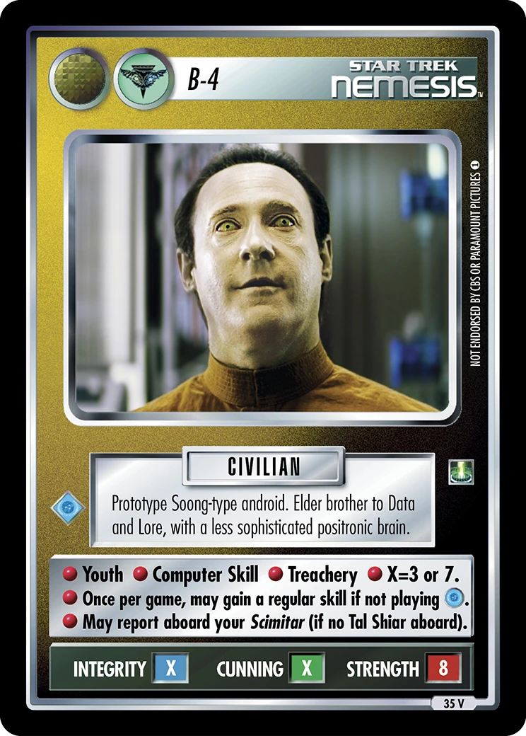 | Lore | Prototype Soong-type android. Elder brother to Data and Lore, with a less sophisticated positronic brain. |