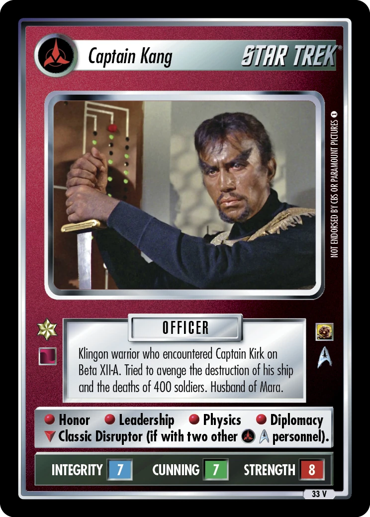 | Lore | Klingon warrior who encountered Captain Kirk on Beta XII-A. Tried to avenge the destruction of his ship and the deaths of 400 soldiers. Husband of Mara. |