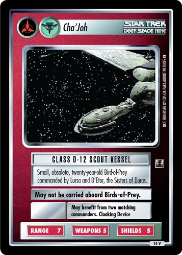 | Characteristics | Bird-of-Prey, Dual affiliation ship, Duras-related, Klingon ship, Romulan ship, Scout |