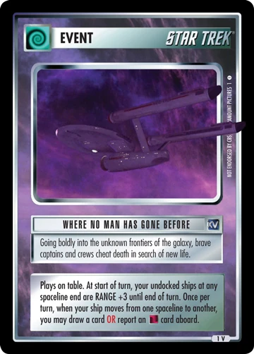 | 1 V | Where No Man Has Gone Before | Virtual | Event | - |