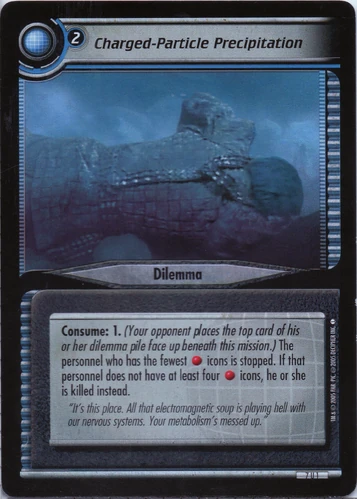 | Game Text | Consume: 1.(Your opponent places the top card of his or her dilemma pile face up beneath this mission.) The personnel who has the fewest |