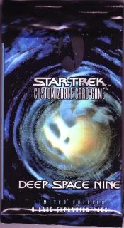 Deep Space Nine is the 14th expansion of Star Trek CCG 1st Edition. It is published by Decipher on 23 July 1998. The set consists of 277 cards. This double size set of 276 cards (plus the U.S.S. Defiant, a special "twice as rare" white-border card previewing a ship in The Dominion expansion) introduces the characters, aliens, settings and situations of the Star Trek: Deep Space Nine television series. This set brings new gameplay concepts such as the Bajoran wormhole, the Gamma Quadrant and the Cardassian and Bajoran affiliations.