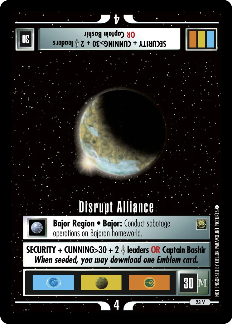 | Lore | Bajor Region ● Bajor: Conduct sabotage operations on Bajoran homeworld. | ||