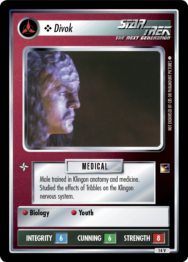 | Lore | Male trained in Klingon anatomy and medicine. Studied the effects of Tribbles on the Klingon nervous system. |