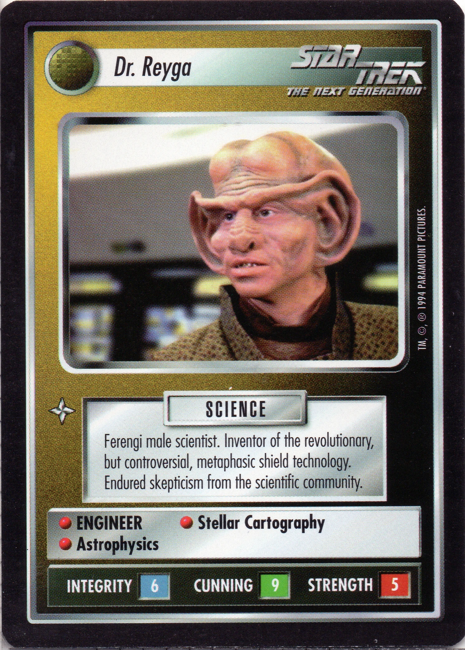 | Lore | Ferengi male scientist. Inventor of the revolutionary, but controversial, metaphasic shield technology. Endured skepticism from the scientific community. |