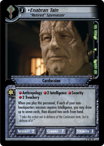 | Enabran Tain - "Retired" Spymaster (VP) | |