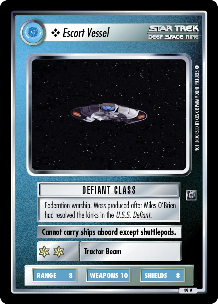 | Game text | Cannot carry ships aboard except shuttlepods. |