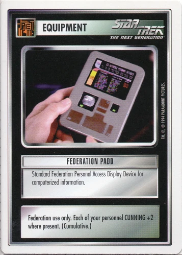 | Game Text | Federation use only. Each of your personnel CUNNING +2 where present. (Cumulative.) |