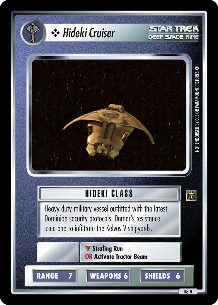 | Lore | Heavy duty military vessel outfitted with the latest Dominion security protocols. Damar's resistance used one to infiltrate the Kelvas V shipyards. |