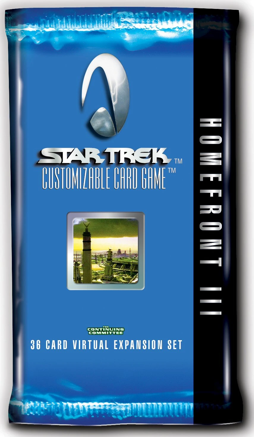 Homefront III is the 13th virtual expansion of Star Trek CCG 1st Edition. It is published by The Continuing Committee on 7 September 2012. The set consists of 36 cards. This set is part of the Core Block consisting of cards from Homefront, Homefront II, Homefront III, Homefront IV, Homefront V, and Homefront VI.