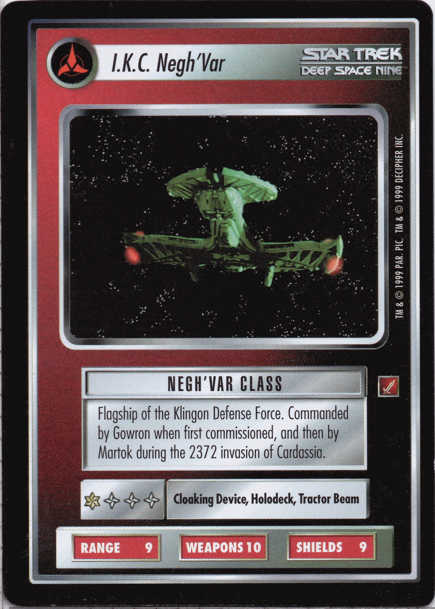 | Lore | Flagship of the Klingon Defense Force. Commanded by Gowron when first commissioned, and then by Martok during the 2372 invasion of Cardassia. |