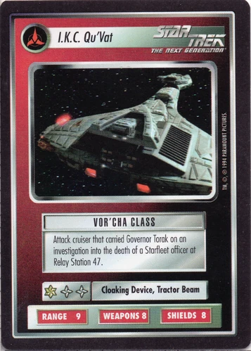 | Lore | Attack cruiser that carried Governor Torak on an investigation into the death of a Stafleet officer at Relay Station 47. |