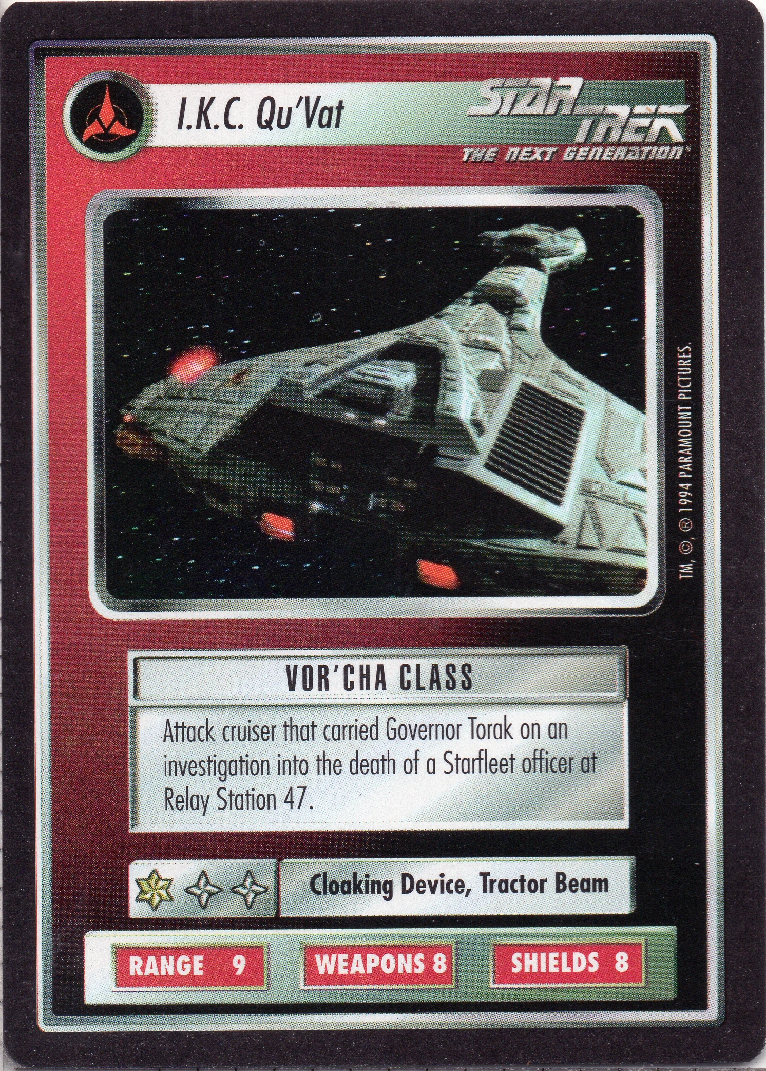 | Equipment | Cloaking Device, Tractor Beam |