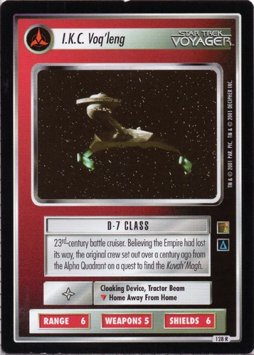 | Lore | 23th-century battle cruiser. Believing the Empire had lost its way, the original crew set out over a century ago from the Alpha Quadrant on a quest to find the Kuvah'Magh. |
