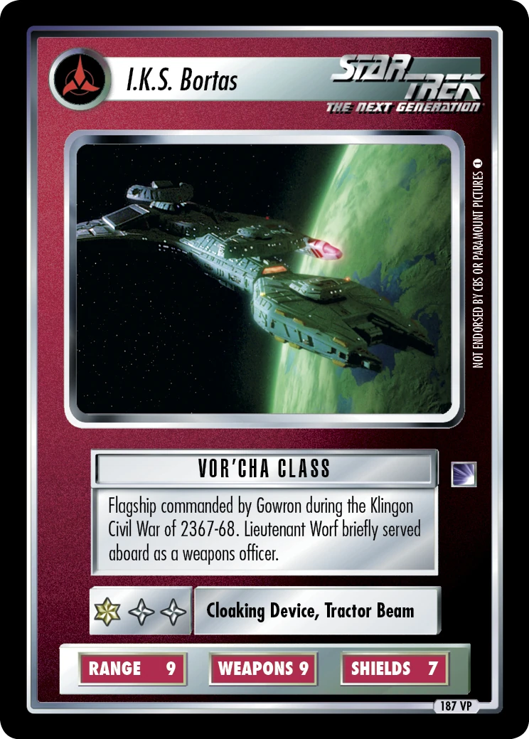 | Lore | Flagship commanded by Gowron during the Klingon Civil War of 2367-68. Lieutenant Worf briefly served aboard as a weapons officer. |