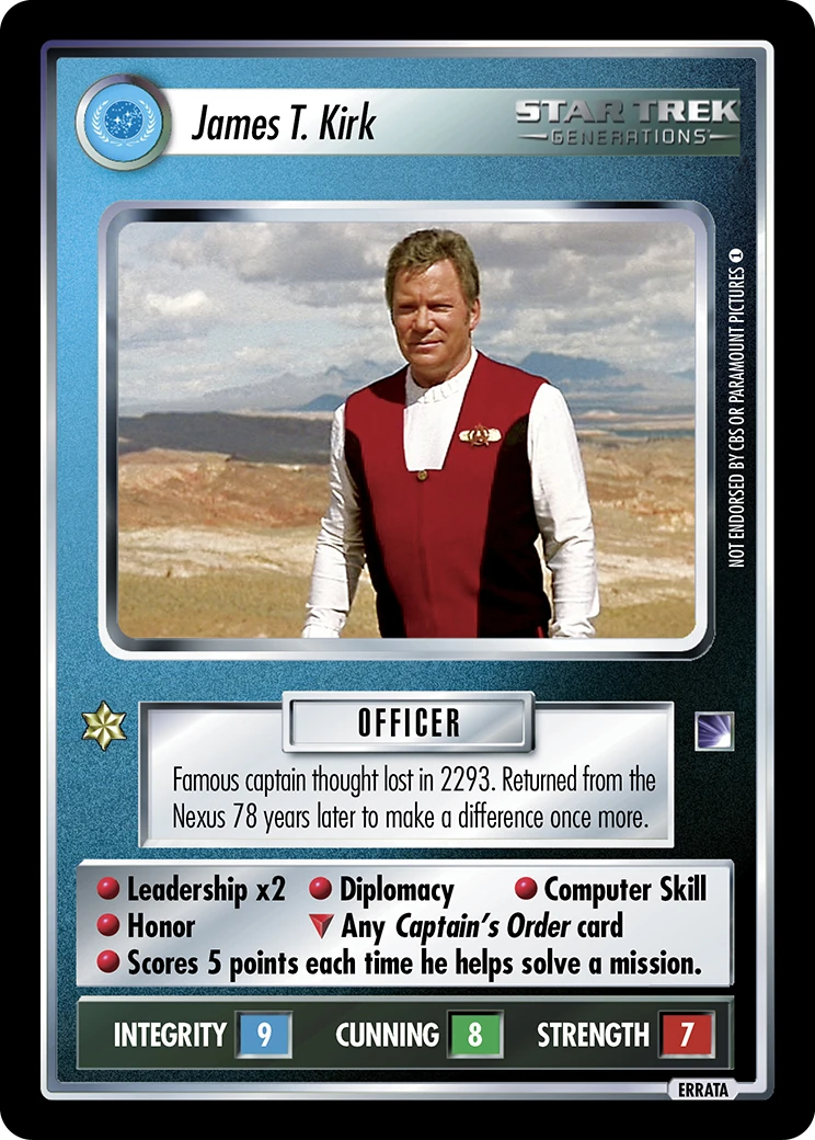 | Characteristics | Any Kirk, Captain, Commander, Skill level 2 personnel |