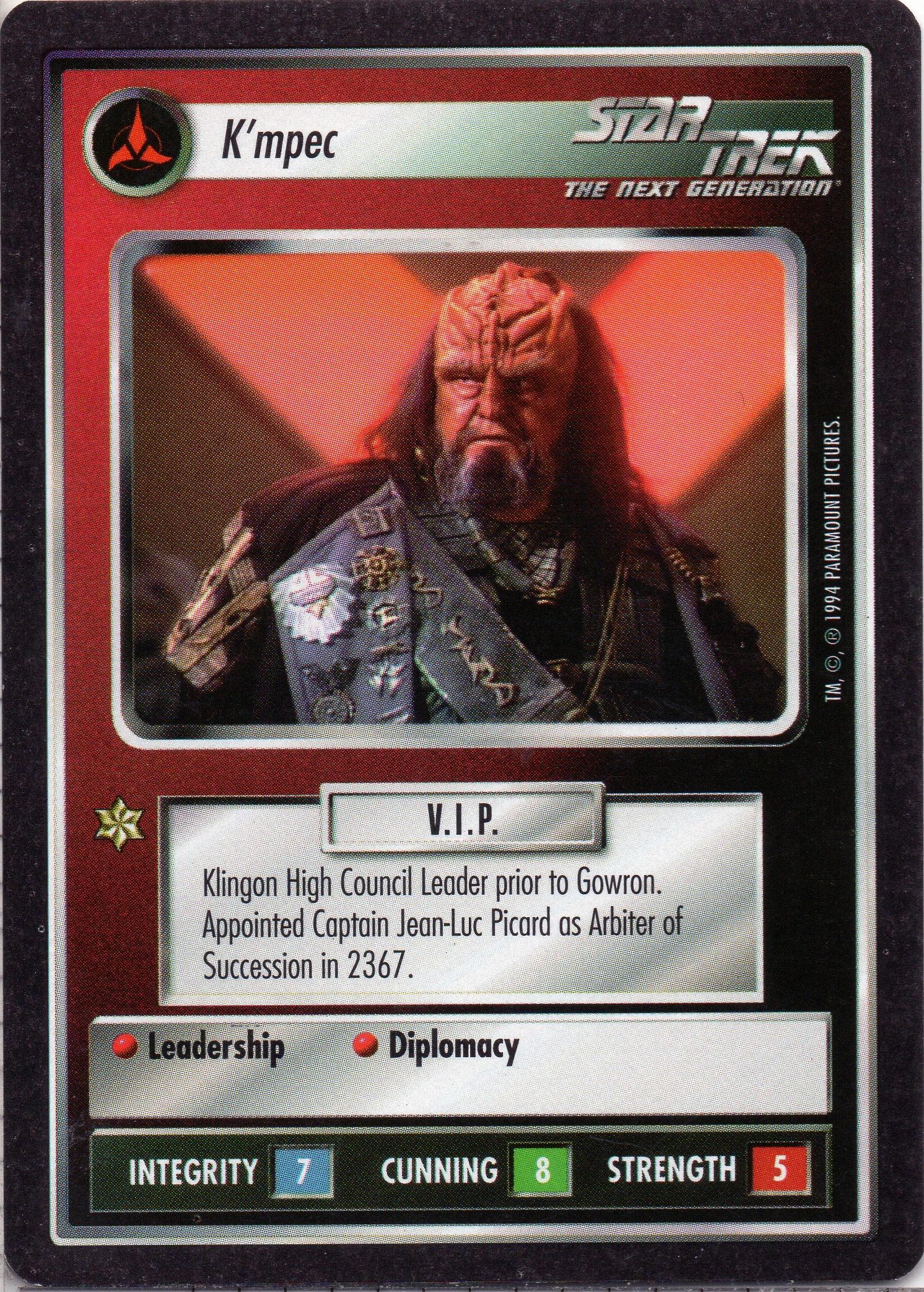| Lore | Klingon High Council Leader prior to Gowron. Appointed Captain Jean-Luc Picard as Arbiter of Succession in 2367. |
