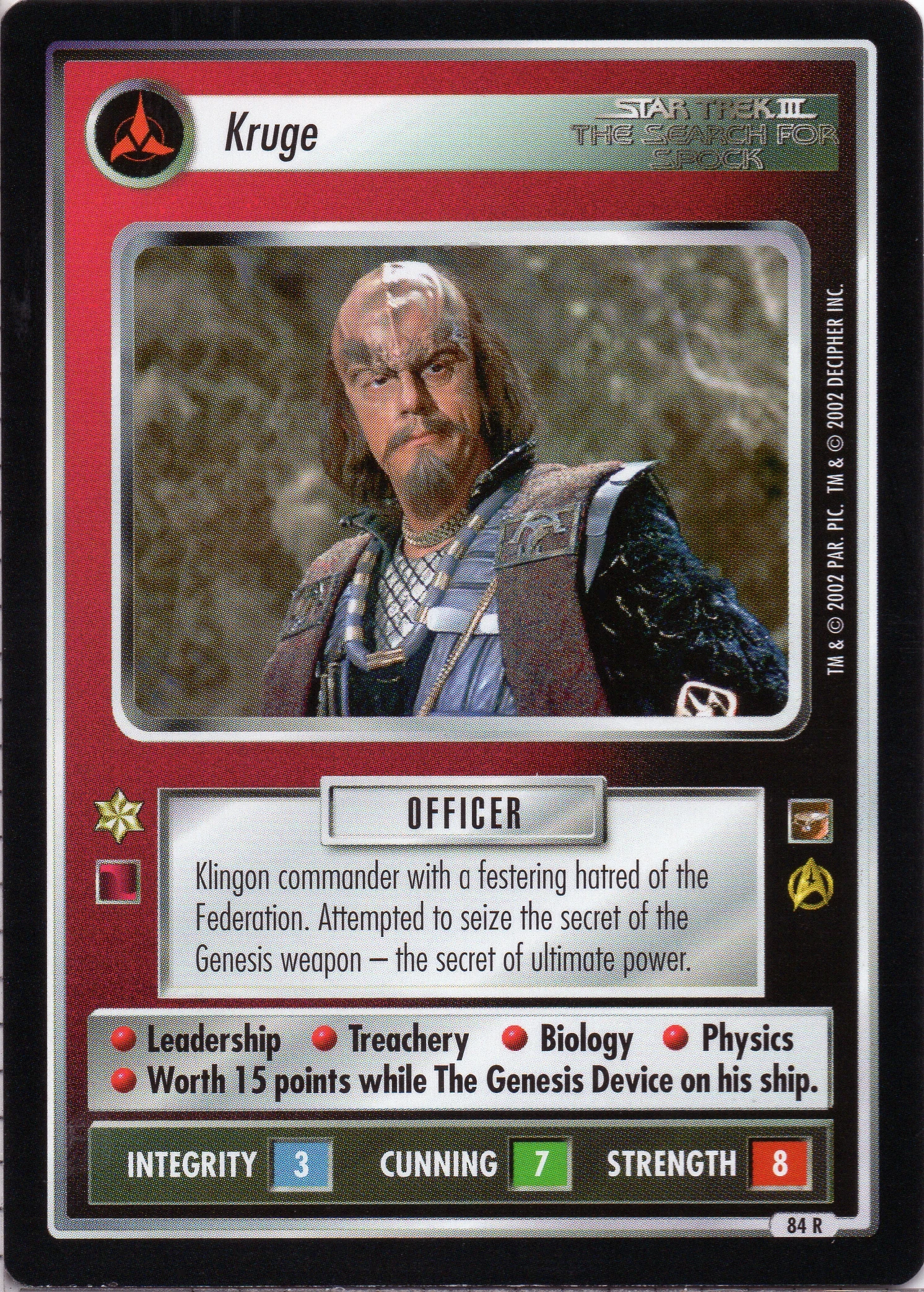 | Lore | Klingon commander with a festering hatred of the Federation. Attempted to seize the secret of the Genesis weapon – the secret of ultimate power. |