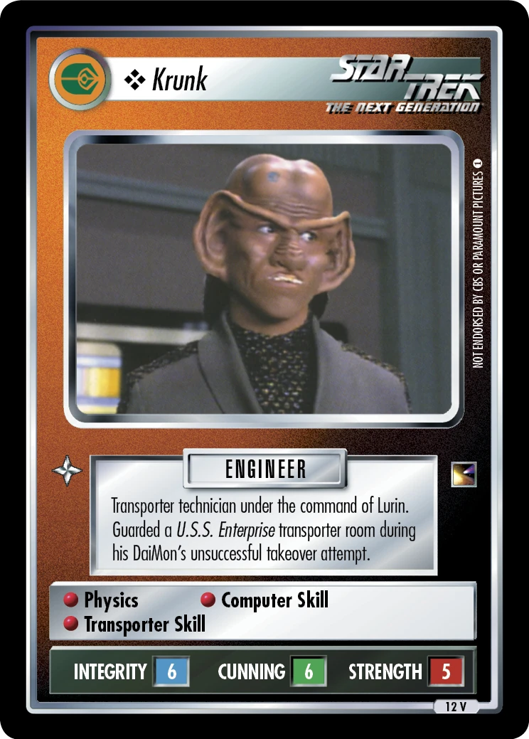 | Lore | Transporter technician under the command of Lurin. Guarded a U.S.S. Enterprise transporter room during his DaiMon's unsuccessful takeover attempt. |