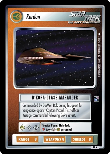 | Lore | Commanded by DaiMon Bok during his quest for vengeance against Captain Picard. First officer Kazago commanded following Bok's arrest. |