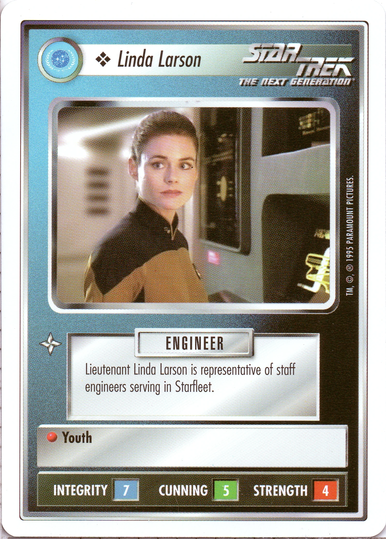 | Lore | Lieutenant Linda Larson is representative of staff engineers serving in Starfleet. |