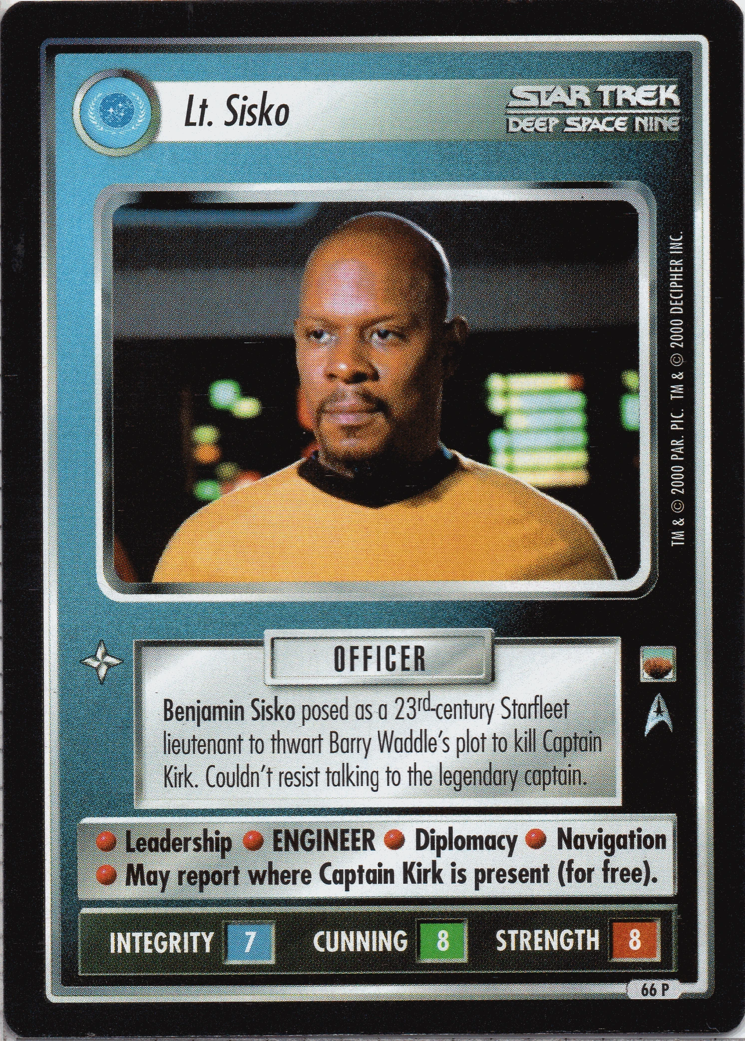 | Lore | Benjamin Sisko posed as a 23rd-century Starfleet lieutenant to thwart Barry Waddle's plot to kill Captain Kirk. Couldn't resist talking to the legendary captain. |