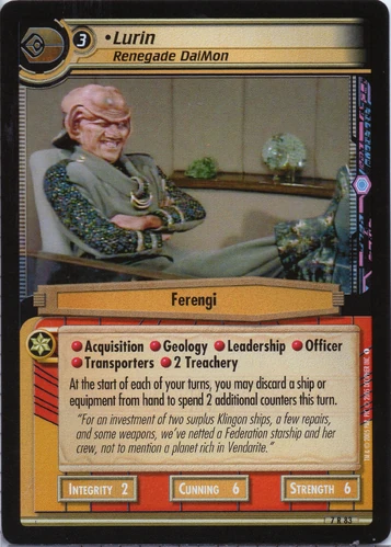 | Lore | "For an investment of two surplus Klingon ships, a few repairs, and some weapons, we've netted a Federation starship and her crew, not to mention a planet rich in Vendarite." |