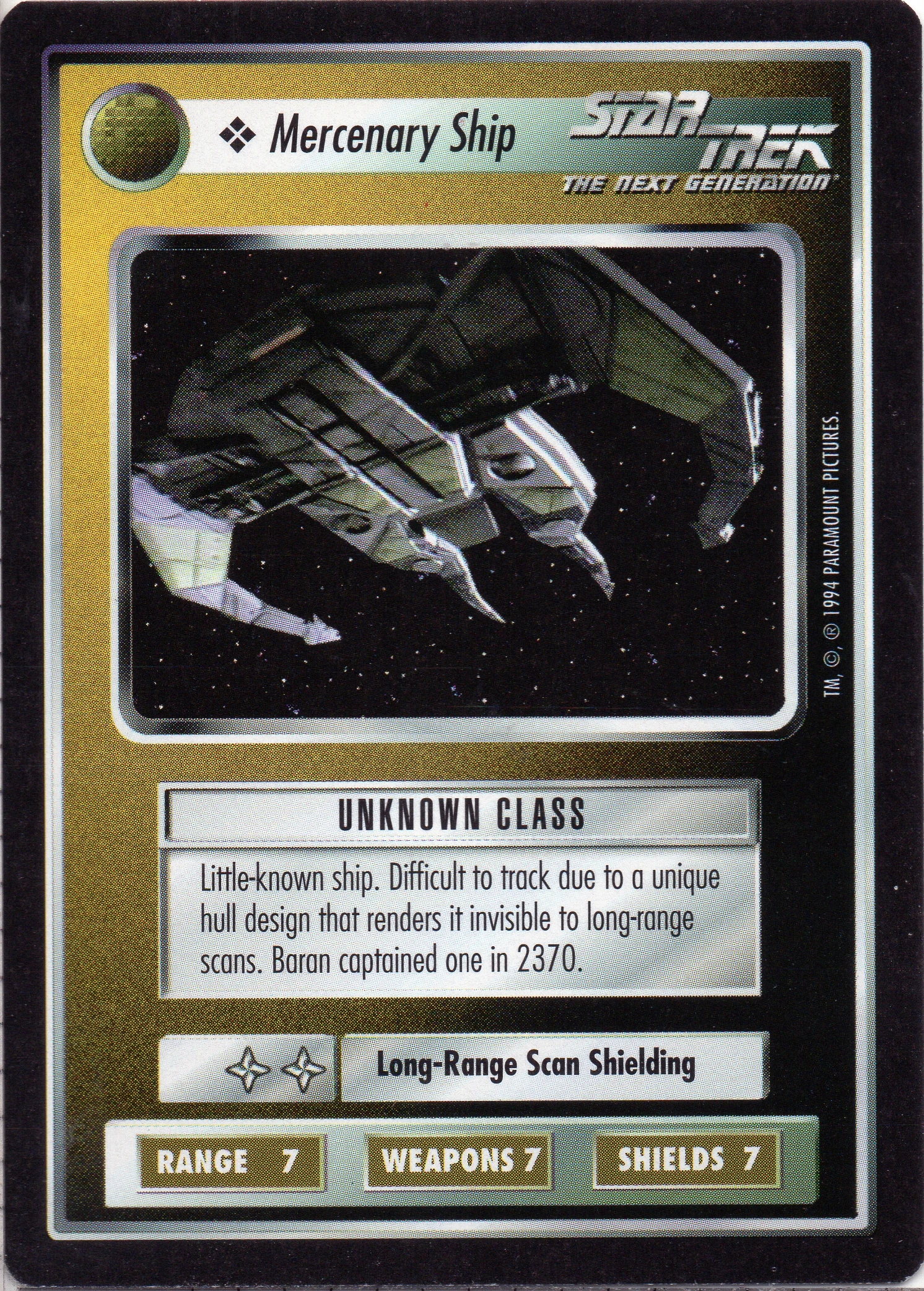 | Lore | Little-known ship. Difficult to track due to a unique hull design that renders it invisible to long-range scans. Baran captained one in 2370. |