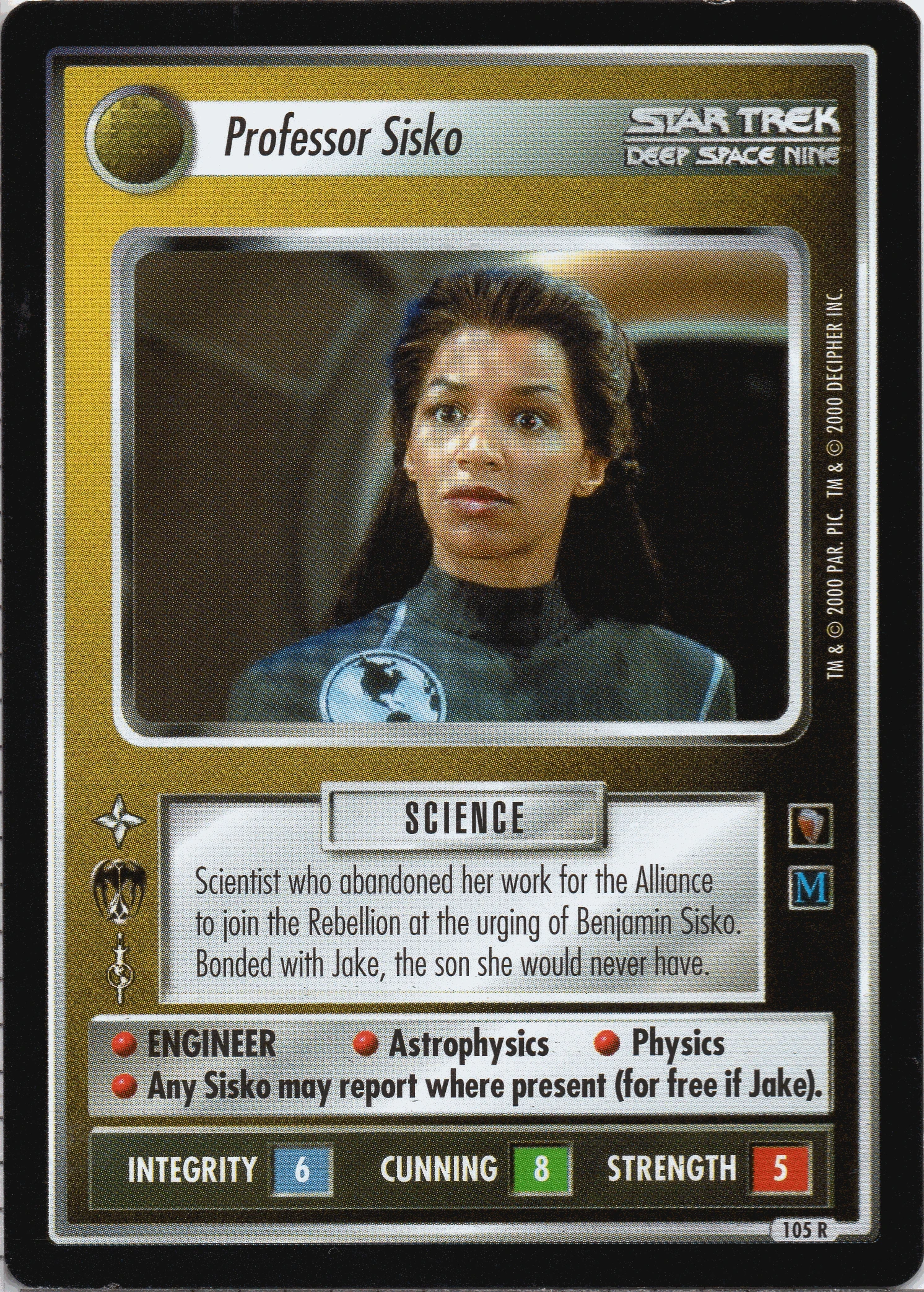 | Lore | Scientist who abandoned her work for the Alliance to join the Rebellion at the urging of Benjamin Sisko. Bonded with Jake, the son she would never have. |