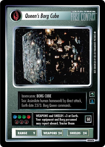 | Lore | IDENTIFICATION: BORG CUBE TASK: Assimilate human home world by direct attack, Earth date 2373. Borg Queen commands. |
