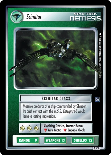 | Lore | Massive predator of a ship commanded by Shinzon. Its brief contact with the U.S.S. Enterprise-E would leave a lasting impression. |