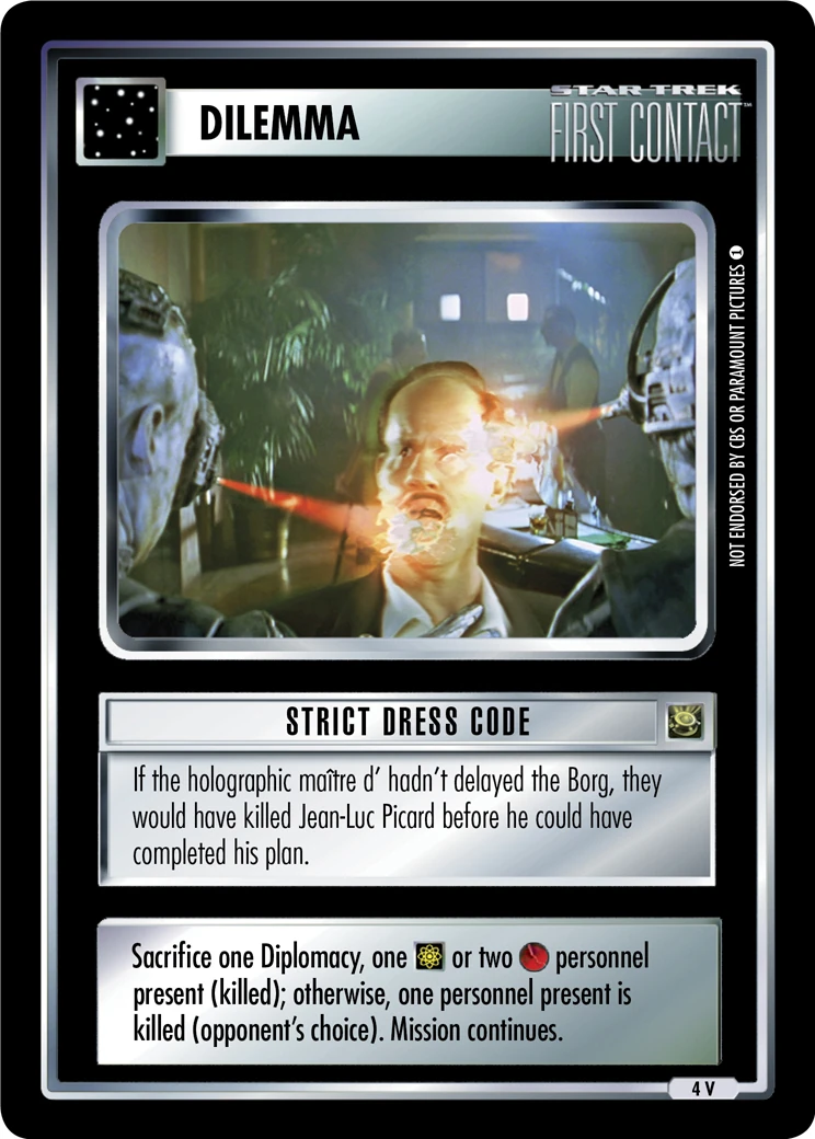 | Lore | If the holographic maître d' hadn't delayed the Borg, they would have killed Jean-Luc Picard before he could have completed his plan. |