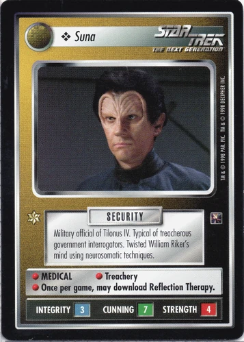 | Lore (Errata) | Military official of Tilonus IV. Typical of treacherous government interrogators. Twisted William Riker's mind using neurosomatic techniques. |
