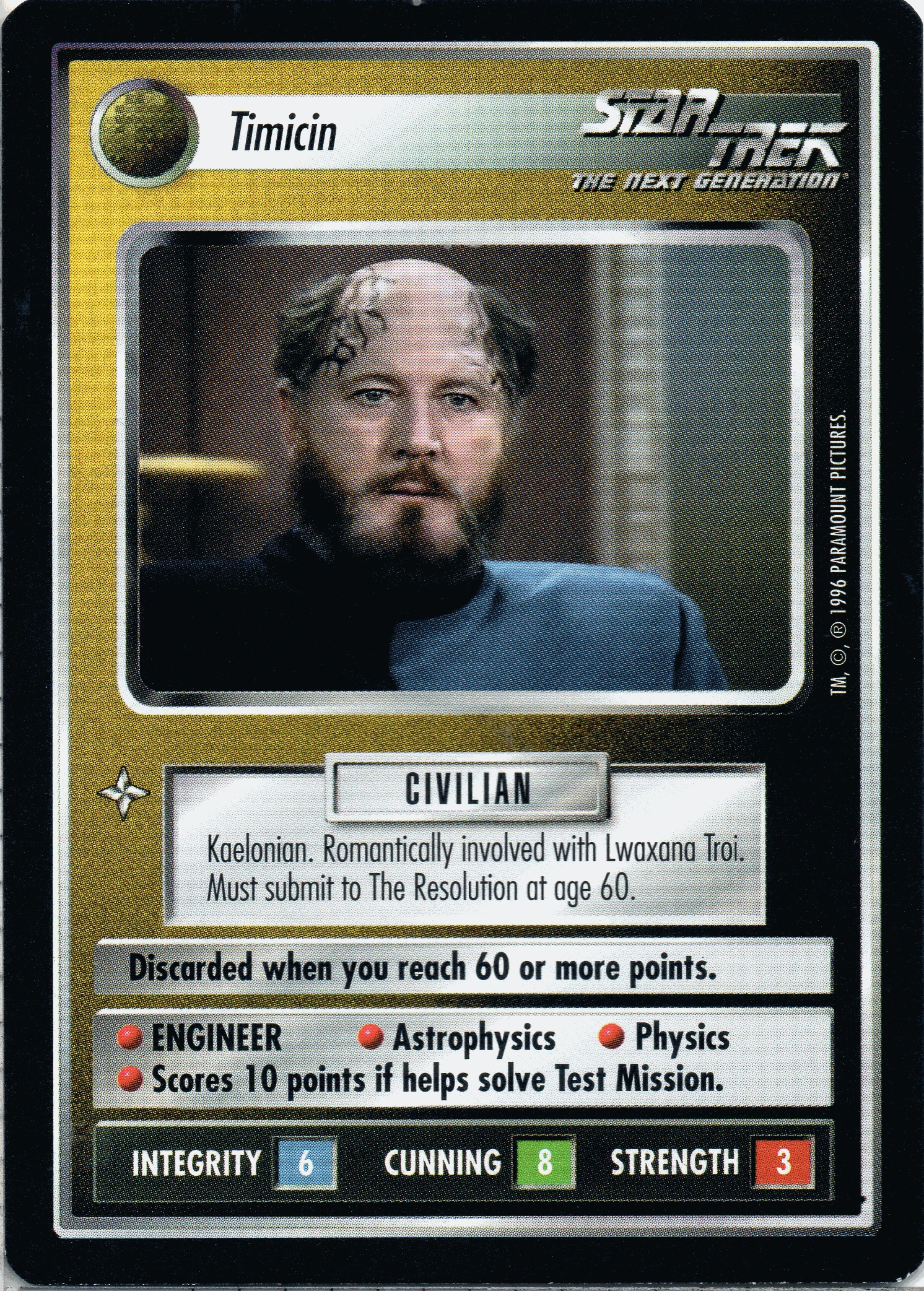 | Lore | Kaelonian. Romantically involved with Lwaxana Troi. Must submit to The Resolution at age 60. |
