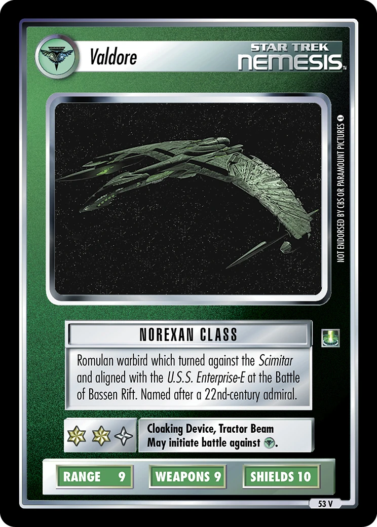 | Equipment | Cloaking Device, Tractor Beam |