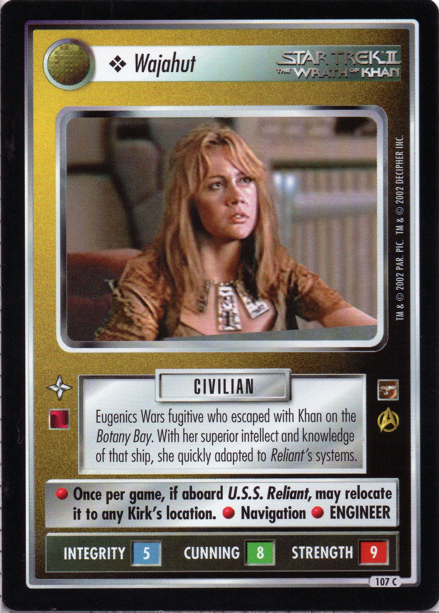 | Lore (Errata) | Eugenics Wars fugitive who escaped with Khan on the Botany Bay. With her superior intellect and knowledge of that ship, she quickly adapted to Reliant's systems. |