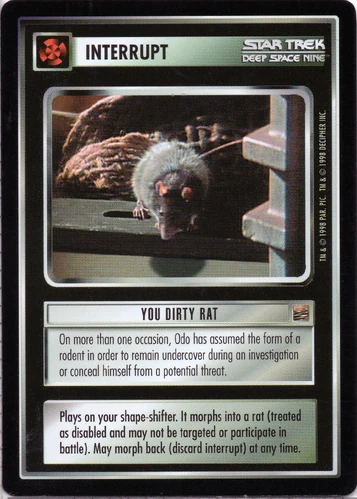 | Game Text | Plays on your shape-shifter. It morphs into a rat (treated as disabled and may not be targeted or participate in battle). May morph back (discard interrupt) at any time. |